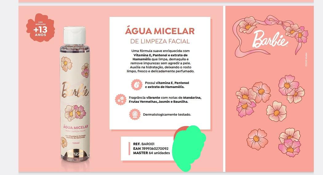AGUA MICELAR DE LIMPEZAFACIAL BARBIE C/16 PCS FENZZA