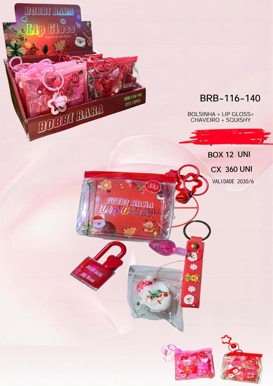 BOLSINHA +LIP GLOSS +CHAVEIRO +SQUISHY BOBBI RARA C/12PCS