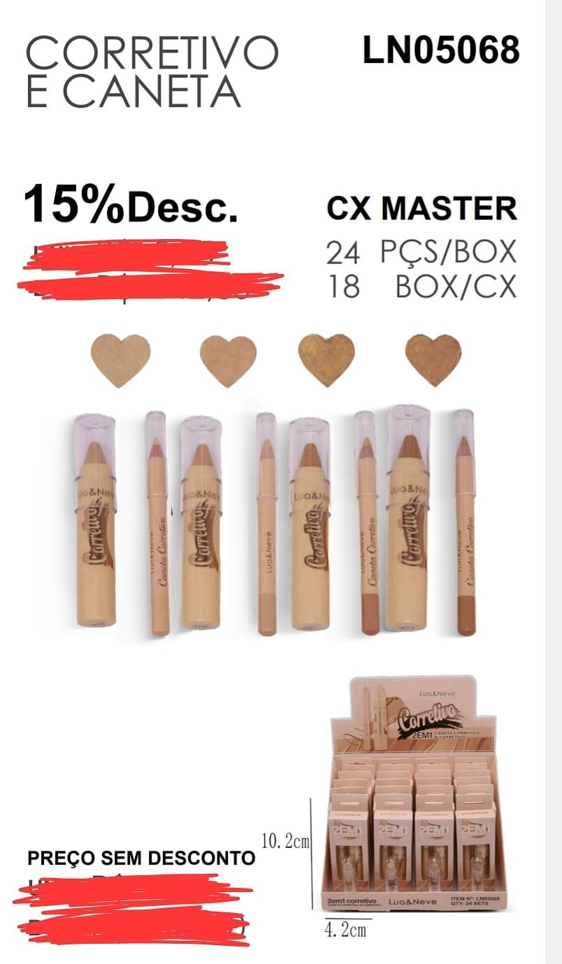CANETA CORRETIVO E CORRETIVO LIQUIDO LUA NEVE C/24PCS