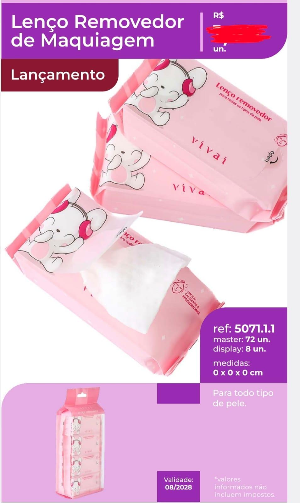LENCO REMOVEDOR DE MAQUIAGEM VIVAI C/8PCS