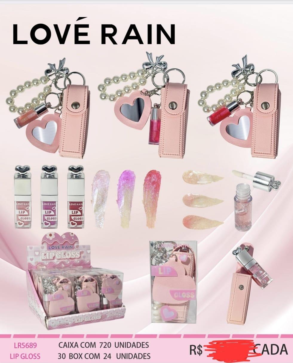 LIP GLOSS COM CHAVEIRO E ESPELHO LOVE RAIN C/12PCS
