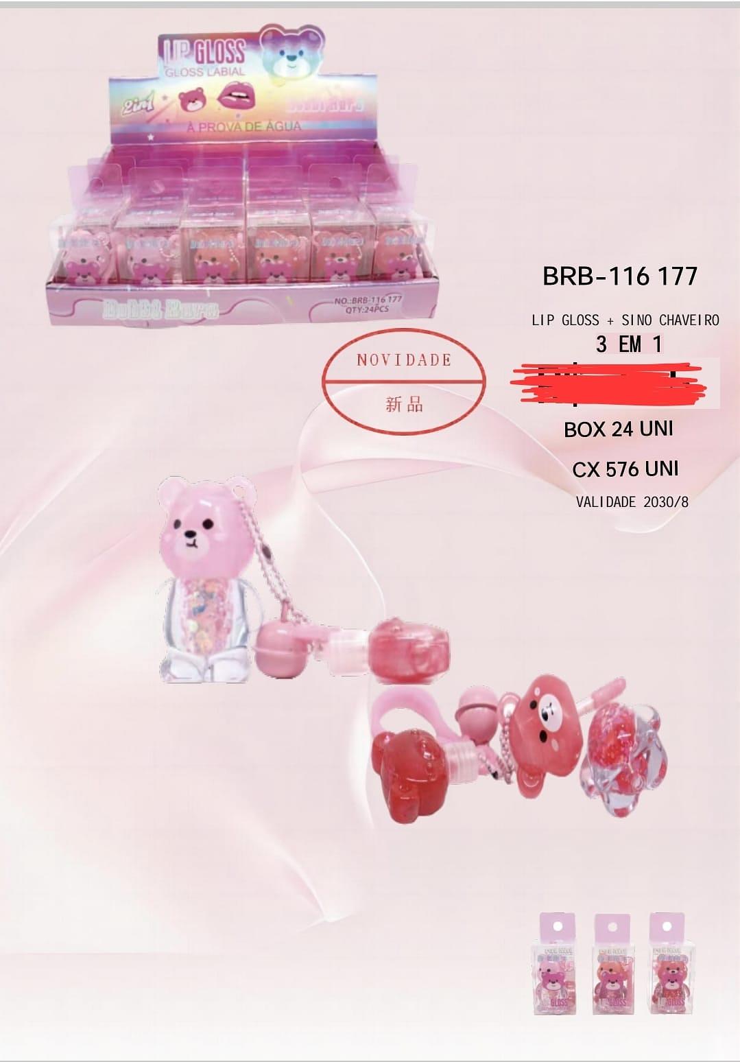 LIP GLOSS +SINO CHAVEIRO 3 EM 1 BOBBI RARA C/24PCS